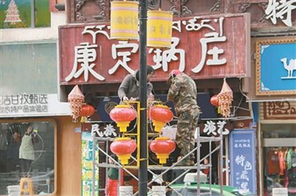 春節(jié)的腳步越來(lái)越近,最近幾天,康定市主要街道、河畔、公園、廣場(chǎng)處處懸掛起燈籠、燈帶等裝飾品,充滿濃濃的節(jié)日氣息。