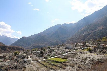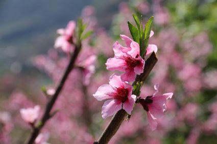 在瀘定縣冷磧鎮(zhèn)、德威鎮(zhèn)等地,桃花、油菜花及櫻花競相開放,一團團、一簇簇,綴滿枝頭,藍天、白云與各色花兒相交,金黃花海在微風(fēng)中起伏。一畦畦油菜花田錯落有致、層次分明,綿延不斷?!岸聶鸦ㄩ_,三月桃花盛,四月紅櫻桃,五月水蜜桃?!背擞筒嘶?,每年陽春三月,瀘定的桃花也隨著和煦春風(fēng)落滿枝頭滿樹的花芽沁著香氣,一點點溢到空氣中,香了春風(fēng),也香了整座城。
