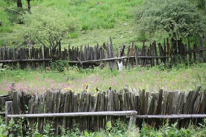隨著海拔高度的升高與緯度的增加,一路上的植被類(lèi)型也在不斷發(fā)生著變化。穿越深闊的暗針葉林,六匹馬起起落落的腳力踩出了一個(gè)馬幫的回音,所有的植物在各自的生命活動(dòng)中散發(fā)出了清新怡人的芬多精,吉美為此小聲哼唱起了愉悅的歌兒,細(xì)聽(tīng)卻又像是兩只云雀在不遠(yuǎn)處鳴囀。再往上走,周遭的林木又轉(zhuǎn)換成了密致的高山杜鵑林,無(wú)數(shù)修長(zhǎng)的木流蘇垂掛在樹(shù)枝上,像哈達(dá)。一路沉默的南杰轉(zhuǎn)頭來(lái)開(kāi)始與我說(shuō)話(huà)“六月間,這里的每一棵樹(shù)都開(kāi)滿(mǎn)了粉白的花朵,一樹(shù)樹(shù)的煞是壯觀(guān)好看,我一個(gè)人經(jīng)過(guò),總能聽(tīng)到一朵、兩朵花鈍落的聲音。最初,我以為是馬雞飛落了,輕聲走入林中打探,身后又會(huì)落下一朵、兩朵花,那聲音厚重沉實(shí),林中又過(guò)于安靜,我就慌忙走出了林子......”南杰說(shuō)話(huà)聲音秀氣,我聽(tīng)得時(shí)斷時(shí)續(xù),過(guò)風(fēng)吹送著南杰話(huà)語(yǔ)中杜鵑花的香氣。前路逐漸敞亮起來(lái)的時(shí)候,路邊的杜鵑樹(shù)開(kāi)始變得稀稀落落了,只見(jiàn)路旁堆壘著高高低低的新鮮柴垛。再往上就沒(méi)有樹(shù)木了,只有矮腳盤(pán)香和淺草,路邊的山包上緊貼著密密麻麻的貌似多肉植物的草葉,從草心抽出來(lái)一枝枝薔薇紅的花柱在風(fēng)中頻頻點(diǎn)頭。雍貝在前方的馬匹上頭低得越來(lái)越沉,以為他瞌睡,我喊了聲貝,他回頭看我,面色灰白嘴唇有些發(fā)紫。南杰回望我們后一躍下馬,從路邊的淺草中折斷幾根盤(pán)香枝別在雍貝的耳際,說(shuō)是可以抵御高反。剩余的兩根遞給我,細(xì)小的枝葉上積著一層薄薄地灰色粉塵,深嗅有松脂的清香氣味,安人心神。