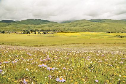 宗塔草原素有七色花海之稱,百花爭艷斗奇,草原上先后開出,黃、白、粉紅、等不同顏色的格桑花;奇跡般地為草原定時換上盛裝,使草原芳華滿園,萬紫千紅勝似人間仙境。