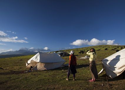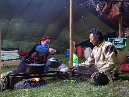 悄然而至的晨曦,隱藏著太古未盡消遁的光芒。揚天的旌旗纏成不倒的箭桿,曾經的故事還沒走出夢中。草原的安謐,輕輕地撫慰著平靜的牛群。奶香已浸漫晨的清新中,擠奶的姑娘臉頰已鍍上了紅霞的光暈。天地間的沉靜,只等待著第一聲牛哞的響起……草原的清晨,朝陽光臨的一刻,酥油和奶汁的淳香會醉倒那一片草色碧透的天地。