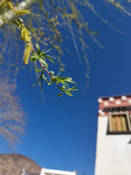 三月春潮翻涌,和暢春風(fēng)吹出“香巴拉”春日序曲。走進(jìn)鄉(xiāng)城縣青德鎮(zhèn)仲德村,“睡醒”的青稞小麥簇?fù)碓谔镩g地頭不住地冒頭吐綠,婀娜的柳樹枝條在陣陣拂過的惠風(fēng)中跳起了熱情的桑巴舞,不遠(yuǎn)處櫻桃花競(jìng)相綻放、淡粉爭(zhēng)妍,桃花、白楊也不甘于后,抽芽的、含苞待放的、迎春綻放的,好不熱鬧……山河將春風(fēng)釀成千言萬語“問候”了“香巴拉”每一個(gè)角落,定格了春的味道。