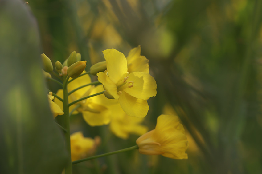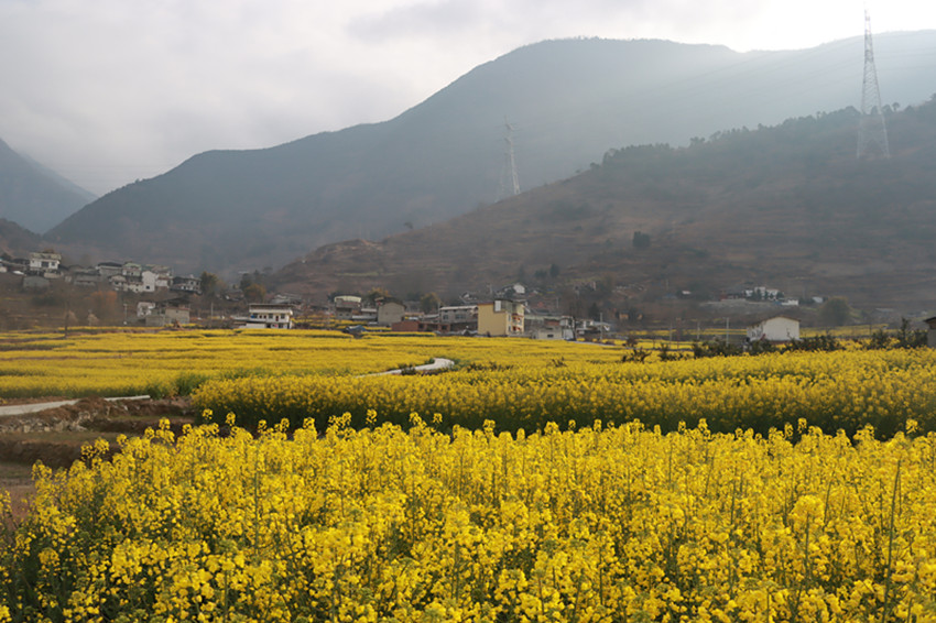 金黃的油菜花美美地填滿了整片田野,與藍(lán)天白云、村落人家相映成趣。順著田埂漫步花海,花香四溢,沁人心脾。微風(fēng)吹來,一朵朵油菜花在風(fēng)中搖曳,嬌嫩的花蕊隨風(fēng)飄動,仿若身著金黃色輕紗的少女在翩翩起舞,靈動迷人。在花叢中飛舞的蜜蜂為花田增添了靈動和生氣,一掃冬日的沉悶,帶給人明快舒朗的好心情。成片盛開的油菜花與前來賞花的游人相映成趣,游人們拿出手機(jī)、相機(jī),尋找最佳的角度,定格醉人美景,讓人忍不住贊嘆:好一番田園美景。
