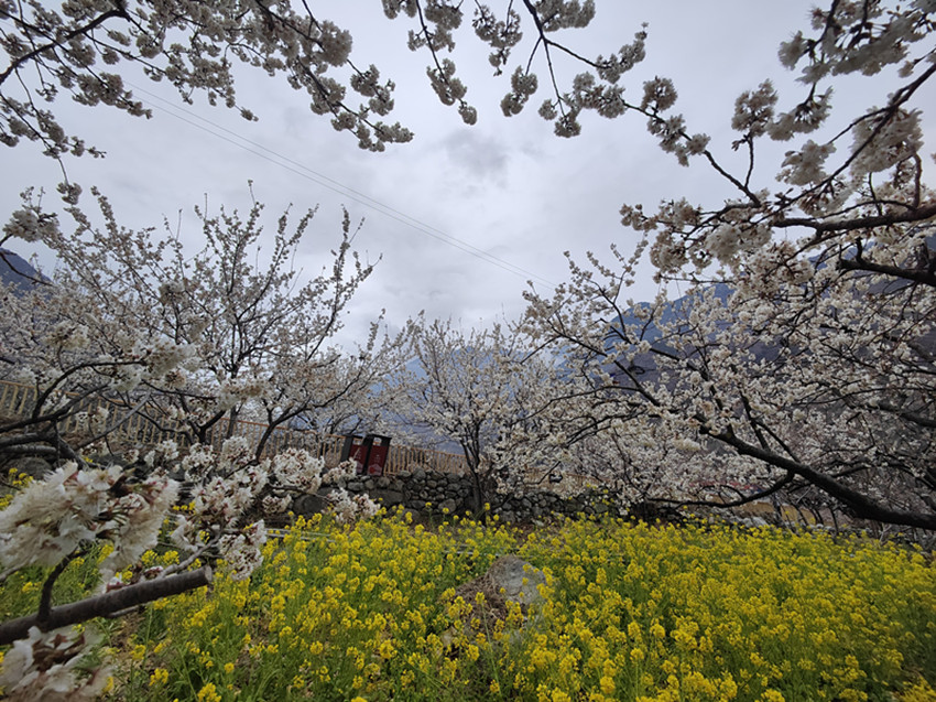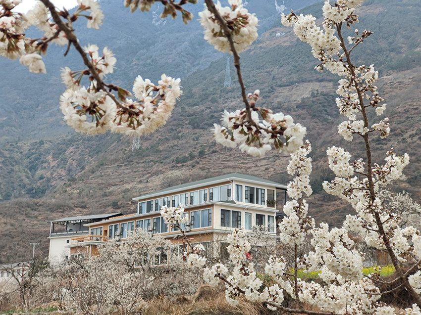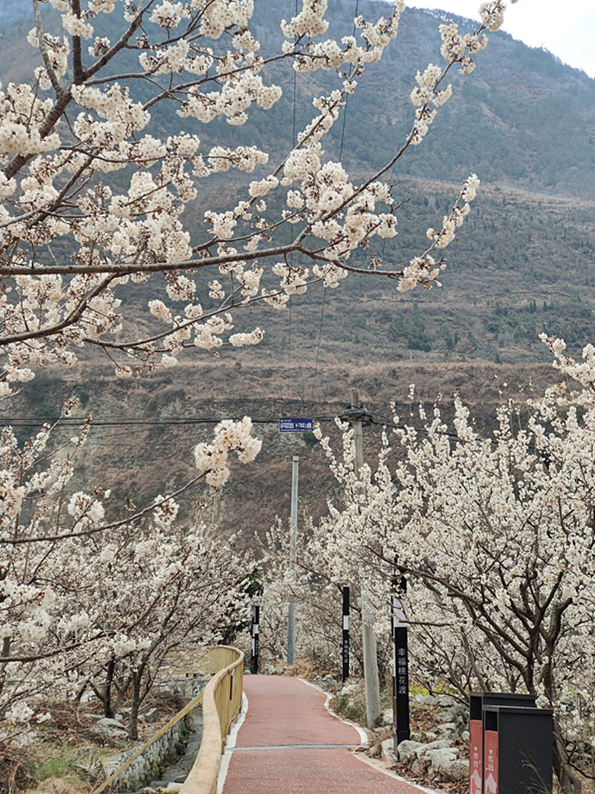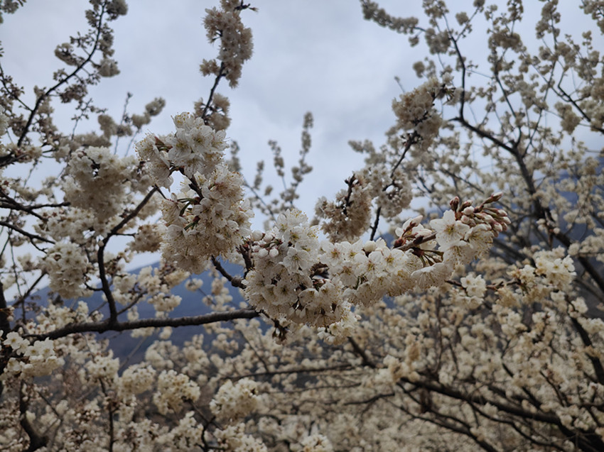 不同于油菜花的燦爛,瀘定縣冷磧鎮(zhèn)千畝櫻桃花,堆雪疊紗、滿山漫白,為整個山谷的金黃璀璨增添了一道恬謐的寧靜。