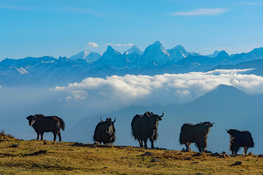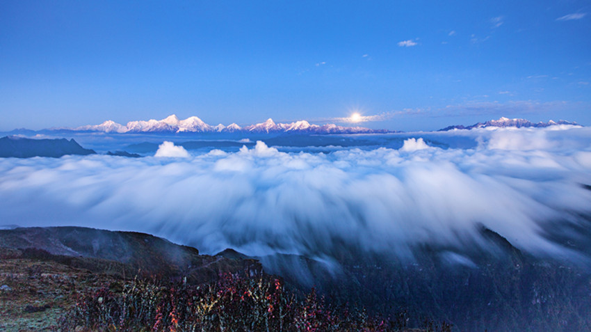 正因?yàn)樨暩卵┥骄哂羞@樣的特點(diǎn),一代接一代的攝影人為了看到與眾不同的貢嘎雄姿,不辭辛勞,不斷尋找新的拍攝角度、不同的拍攝機(jī)位和發(fā)現(xiàn)新的景觀,只為從另一個(gè)視覺一睹貢嘎雪山的尊容。