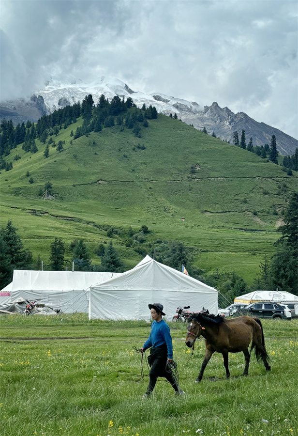 不管然日卡村還是則巴村,村民的勤勞善良也一樣讓人印象深刻。然日卡村的藏族姑娘丁真拉珍剛過18歲,卻經(jīng)常像個(gè)將軍去山上放牧和指揮100多頭牦牛,如果時(shí)間允許,她還去挖蟲草和松茸,但同時(shí)又在村里當(dāng)旅游向?qū)ВT上摩托、牽上馬匹帶游客四處參觀,每天忙得不亦樂乎;同樣是然日卡村的小伙澤仁剛?cè)⒘宋棠饭媚?,他們從傳統(tǒng)的放牧中抽身出來,與村里許多年輕人一樣,一心一意打造鄉(xiāng)村民宿,用勤勞的雙手走上了一條嶄新的致富路;而則巴村的帥小伙甲他,今年也在村子里建起了屬于他們一家的“奔然甲他”民宿,奔然是村前一座小山的名字,甲他相信他們的日子一定如山一般堅(jiān)實(shí)越過越好。