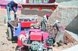 26日,記者在甘孜縣色昔底鄉(xiāng)看到一派春耕備耕的繁忙景象。