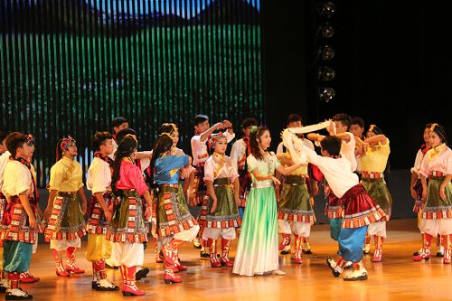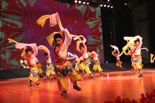 在歡快的音樂(lè)聲中,《師恩如歌》拉開(kāi)了“園丁頌”文藝晚會(huì)的序幕。悠揚(yáng)的歌聲,歡快的舞蹈,熱烈的掌聲,演繹著同一個(gè)主旋律:“老師,是您為我們開(kāi)啟了智慧的大門(mén),加減乘除,算不盡您做出的貢獻(xiàn)!詩(shī)詞歌賦,頌不完對(duì)您的感激!千言萬(wàn)語(yǔ)只能匯成一句話:老師,您辛苦了,我們永遠(yuǎn)感謝您!”晚會(huì)以“園丁頌”為主題,分為“播種希望”、“愛(ài)的光芒”、“九月禮贊”三個(gè)篇章。歌曲《圓夢(mèng)中國(guó)》、情景劇《守望白云》、舞蹈《老師親,媽媽親》等13個(gè)節(jié)目先后上演。一首首膾炙人口的歌曲,唱出了對(duì)人民教師的無(wú)限深情,一個(gè)個(gè)激情昂揚(yáng)的舞蹈,道出了對(duì)人民教師的萬(wàn)般感激。旋律優(yōu)美、歡快熱烈、精彩紛呈的晚會(huì)深深地吸引了現(xiàn)場(chǎng)觀眾的眼球。一聲聲發(fā)自內(nèi)心的問(wèn)候,一句句來(lái)自心靈的祝福,將晚會(huì)一次次推向高潮,晚會(huì)現(xiàn)場(chǎng)掌聲雷動(dòng)、歡呼雀躍,《吉祥祝福》歌舞表演為整臺(tái)晚會(huì)畫(huà)上了一個(gè)圓滿的句號(hào)。