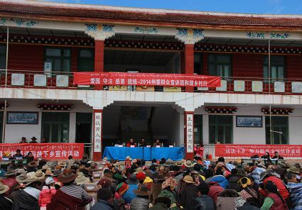 在此次宣講活動(dòng)中,我州建立了州、縣、鄉(xiāng)、村“四級(jí)”宣講網(wǎng)絡(luò),將群眾宣傳教育與群眾工作全覆蓋、法治甘孜、創(chuàng)建全國(guó)民族團(tuán)結(jié)進(jìn)步示范州等活動(dòng)有機(jī)結(jié)合,突出主題宣講,注重特色宣講和典型宣講,創(chuàng)造性地啟用了“草根宣講員”以及面對(duì)面“1+N”宣講,派會(huì)當(dāng)?shù)卣Z(yǔ)言的宣講老師進(jìn)行宣講,形成了層次分明、重點(diǎn)突出的立體宣講體系,實(shí)現(xiàn)了從剛性宣教向柔性宣教、從說(shuō)教向寓教、從蜻蜓點(diǎn)水向潛入內(nèi)心的“三個(gè)轉(zhuǎn)變”。