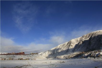 記得,離開甘孜縣城,前往滿金寺的那個早晨。同行的幾個人早早用過了早飯,趁著出發(fā)前僅有的一點時間,站在頂樓視野開闊的餐廳里,盼著太陽沖出來,直接把陽光大把大把地扔在大雪所覆蓋的一切事物上。天公作美,出發(fā)之前,太陽慷慨了一回。于是,一陣噼噼啪啪的快門聲響了起來,應(yīng)和著寥寥餐廳里的某種空白。