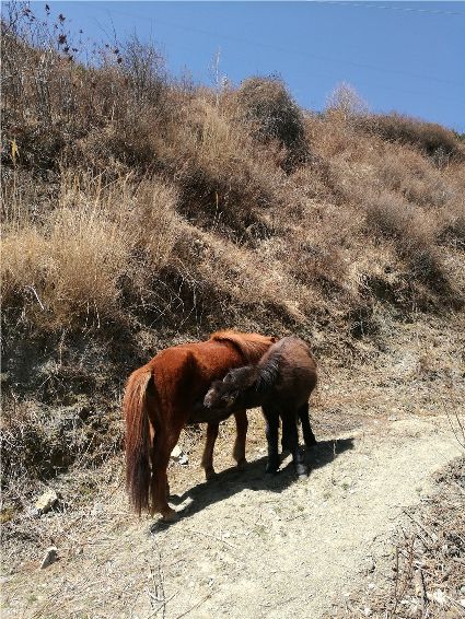 晴天里有陽光,陽光總是充滿愛和溫馨,無論人或是動(dòng)物,母愛都是最寶貴的甘露。行走在阿里布果,無限愜意油然而生,徜徉在陽光的懷抱,心寧而靜。突然,馬鳴聲打破了這份寧靜,一匹黃馬一邊吃著草,一邊吼叫,不一會(huì)兒,一匹小馬駒飛奔而來,走到黃馬身旁,吮吸著甘甜的乳汁。天很藍(lán),陽光很溫暖,世上有一種最美麗的聲音,那便是母親的呼喚。