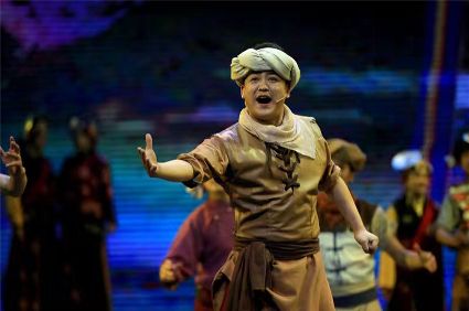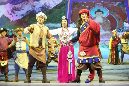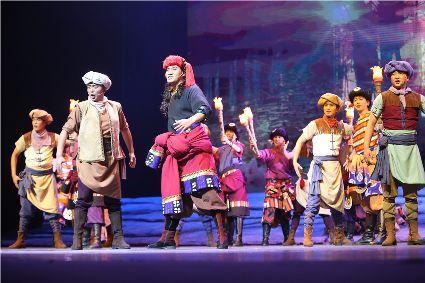 初生的音樂劇《康定情歌》是個聽話謙遜的孩童,專業(yè)人士的諄諄教誨一定會牢記在心;他也是個具有思鄉(xiāng)情結的游子,自己的一顰一笑都流露出濃郁的民族風采;同時他也是個頑強拼搏的逐夢少年,即便汗水和淚水匯成一道道溝壑,依然挺胸不低頭,只為在明天,成為更好的自己。 (圖片由州歌舞團提供)