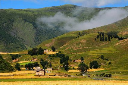 在金秋季節(jié),當(dāng)嬌滴滴的“水月江南”還在苦苦盼望燥熱早日離去時,而明媚的秋色已經(jīng)在粗獷豪邁的甘孜大地上揮毫潑墨。