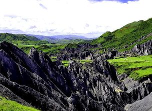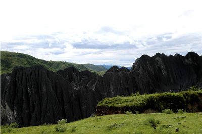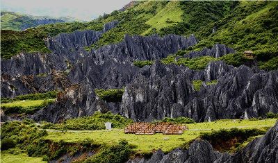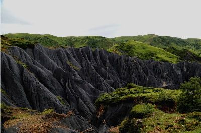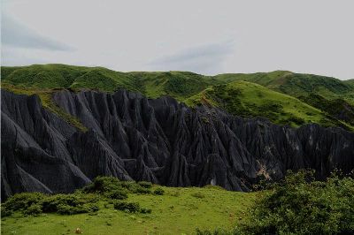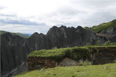 墨石公園,是中國唯一高原石林景觀,被譽為“中國最美景觀大道第八美 ”。受第四紀(jì)新構(gòu)造運動影響,隨著青藏高原的隆起,鮮水河斷裂帶中的巖石受到擠壓、剪切、破碎、糜化,形成糜棱巖石林。石林含丐鹽,受空氣濕度影響,干燥季節(jié)呈淺灰色、淺藍色,濕潤季節(jié)呈滄黑色,因此又稱之為變色石林。
