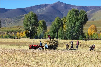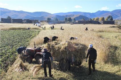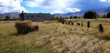 “我們要利用這段晴好的季節(jié),抓緊收割。”在廣袤的原野,村民們開(kāi)鐮收割青稞,一輛輛滿(mǎn)載成捆青稞的拖拉機(jī)在田間和鄉(xiāng)村小道上歡快地疾馳。