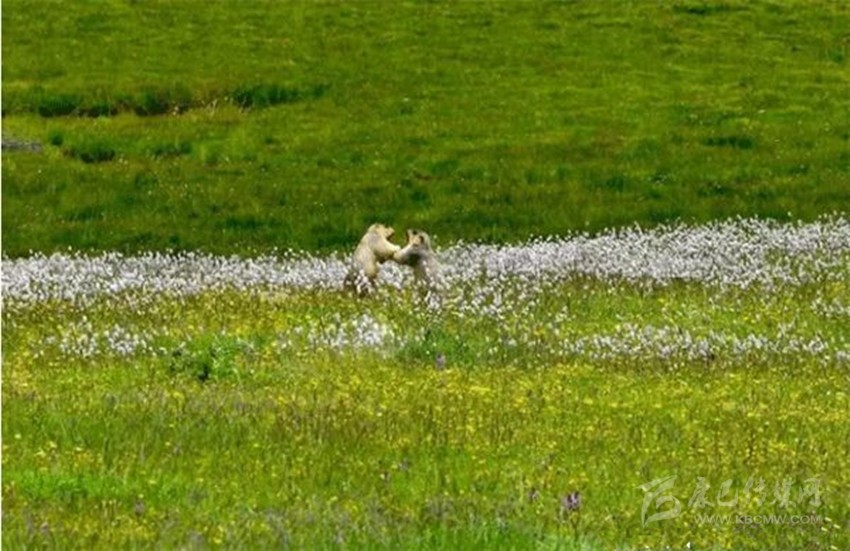 藍天白云、雪峰皚皚,冰川閃爍、青山融融、綠草茵茵、波光粼粼。湖岸珍禽異獸出沒,湖中野鴨成群,魚兒游弋。山花爛漫,爭芳斗艷,真可謂世間仙境。