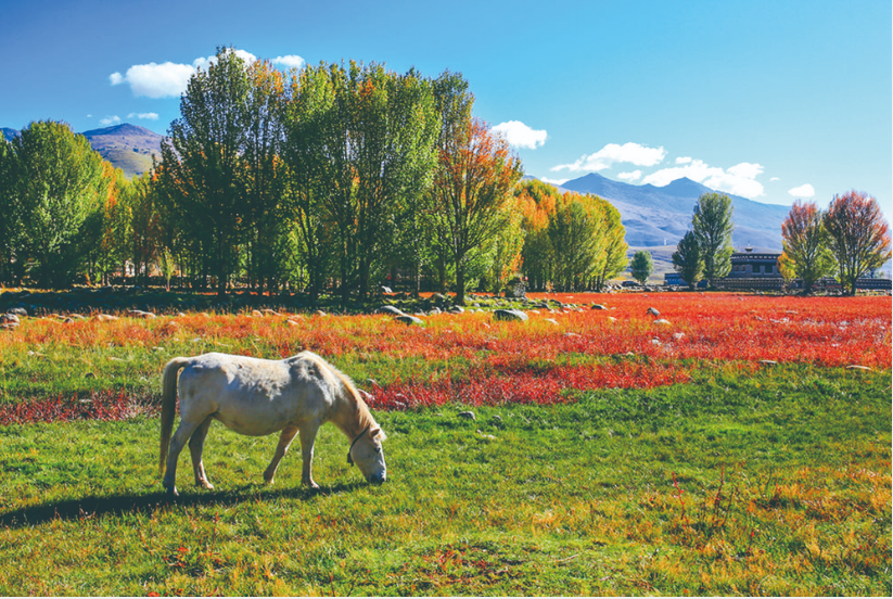 三月的四川稻城縣香格里拉鎮(zhèn),春風與陽光攜手而至,高原的寒意悄然退去,草長鶯飛,綠葉在枝頭伸展,繁花在大地擁簇。