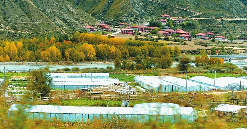 一條淺淺的小河與公路相依相偎地蜿蜒流淌,房前路旁一棵棵挺拔的白楊在秋風(fēng)秋陽中炫耀著特有的金黃。遠(yuǎn)處的山脊,舒緩地在天幕上劃出一道道優(yōu)美的弧線。滿眼藍(lán)色、白色、金黃、黑色、綠色的飽和色塊,在明麗的秋陽光線的描繪中,凸現(xiàn)著流暢的色彩和線條,恍如置身畫中。