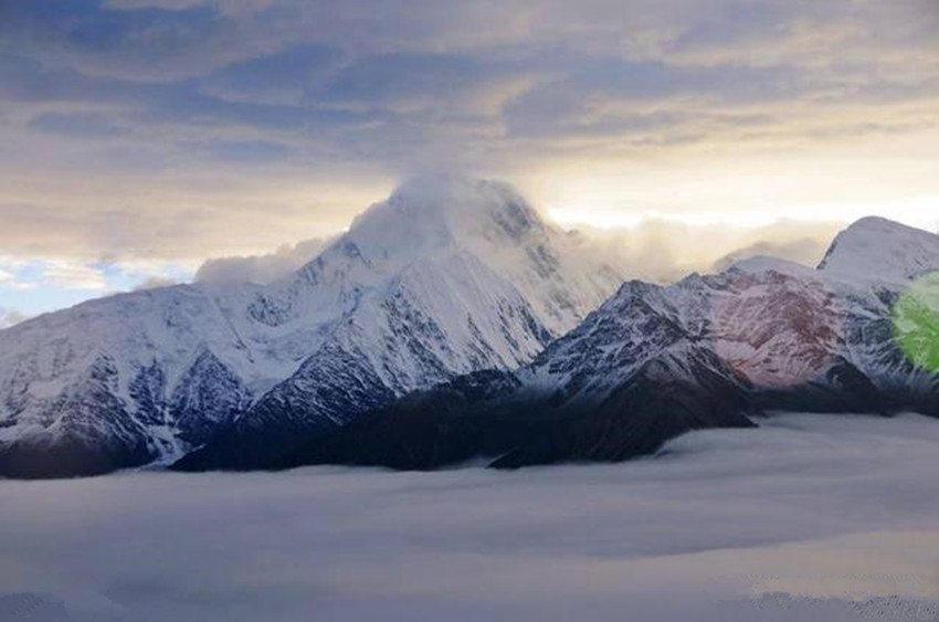 貢嘎山位于康定城南約55千米處,“貢嘎”為藏語(yǔ)“雪白”之意。貢嘎山險(xiǎn)峻挺拔,峰項(xiàng)有70平方米的平臺(tái),終年積雪覆蓋,晴空萬里時(shí),閃耀著熠熠光芒,瑰麗壯觀。