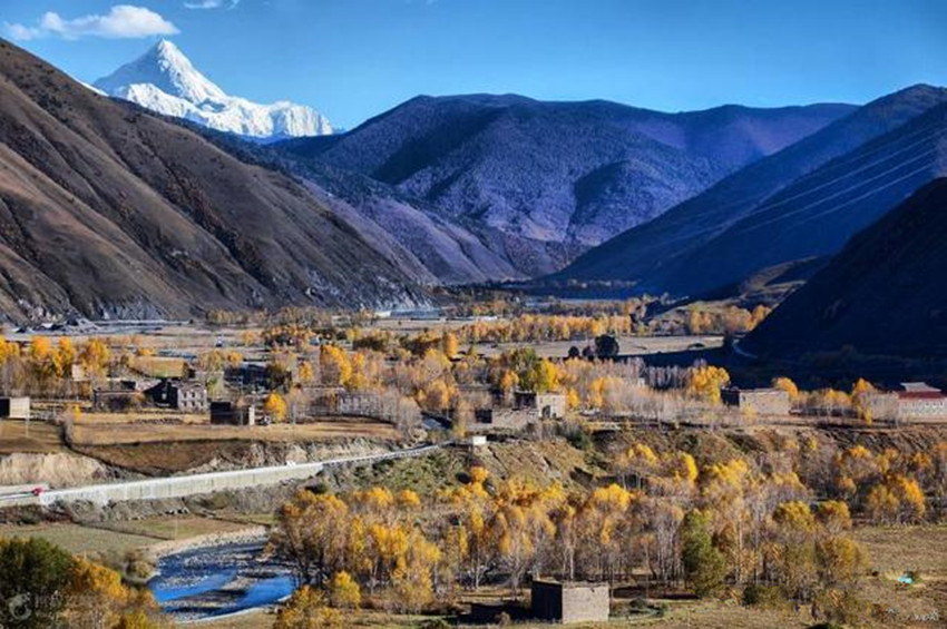 新都橋又稱東俄羅,位于318國(guó)道川藏南北線的分叉路口,號(hào)稱“攝影家的天堂“。在這可以拍攝到無垠的草甸,曲折的溪流,金黃的秋葉,山坡上大片在覓食的牛羊,散落著的藏族村寨。隨便一按快門都能得出一張絕美的風(fēng)景照。