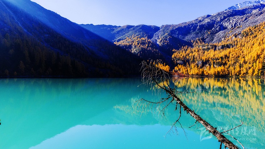這個時間,藍(lán)天、雪山、黃松、碧海,構(gòu)成了一幅難得的天然畫卷。