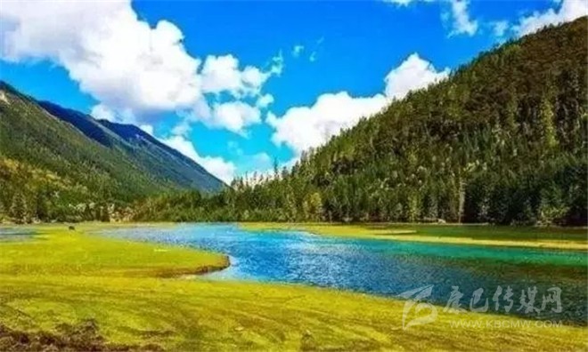 四周有草原、森林、雪山相伴,風景如畫。每到夏天,湖面上開滿各種奇花異草,滿谷幽香,在清澈透底的湖水襯托下,美不勝收。