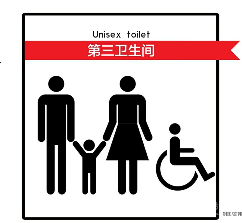 值得一提的是,四川的第三衛(wèi)生間還將有標(biāo)示?!锻ㄖ凤@示,該標(biāo)示上畫著一對(duì)夫妻牽著孩子,旁邊還有一個(gè)坐著輪椅的行動(dòng)不便者。在畫面下方,注明了“第三衛(wèi)生間”字樣,英文“Unisex toilet”意為“無性別廁所”。 (據(jù)四川在線)