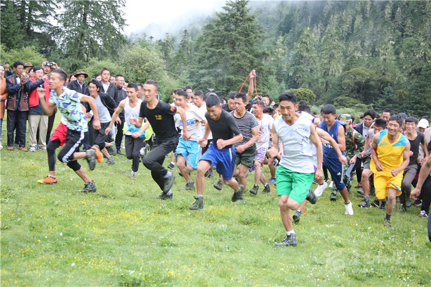 徒步穿越邀請賽是九龍縣委、縣政府主辦的2018年群眾文藝匯演暨甘孜州山地旅游節(jié)之圣湖祈?!さ谌龑梦轫毢S魏9?jié)活動的主要內(nèi)容之一。140多名參賽選手和幾百名旅游愛好者一早來到伍須海邊,置身于云霧繚繞的山巒之間,共同見證賽事啟幕。在宣布比賽規(guī)則后,隨著裁判一聲哨響,參賽選手從郁郁蔥蔥、芳華吐露的伍須海岸的上草壩奔向山峰,經(jīng)過伍須海、海臺景點,最終到達風(fēng)景名勝日魯庫。在11公里的山路中,參賽選手將爬越4200多米的高峰,穿越古老蔥郁的原始森林,感受高山杜鵑和高原野花的麗姿,與窸窣的鳥鳴為伴,在競賽的同時,樂享藏彝走廊的無盡魅力。