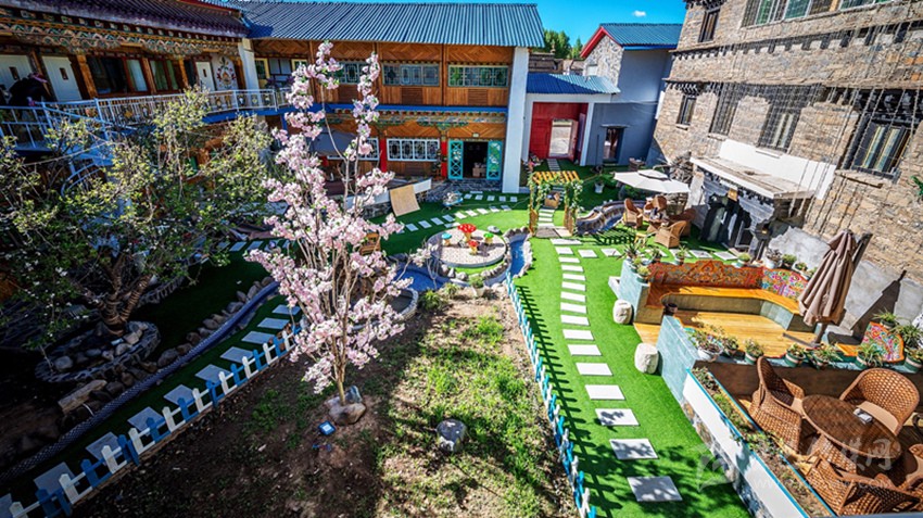 石雅琴是瀘州人,去年11月租下稻城白塔旁邊一藏式四合院,打造民宿酒店。今年6月,酒店開業(yè)。