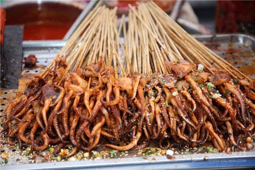 作為一個(gè)四川人,對于麻辣味的食物毫無抵抗力,在康定后街林立的商鋪中,記者一眼就相中了“深海魷魚花”這家店。看著泛著紅油的魷魚花靜靜地躺在紅椒和芹菜間,記者咽了咽口水,向老板買了一份兒。“真是純純的川味兒沒錯(cuò)了,又麻又辣的?!庇浾邔习逭f。老板回答到:“魷魚花最講究的就是刀法了,要切得好看。雖然在顧客看來都差不多樣子,但是我每次都要經(jīng)過細(xì)細(xì)斟酌再一刀一刀的切,爭取多弄幾種樣式,現(xiàn)在我的??蛡円矔?xì)細(xì)地考究我切的魷魚花了。以前我只賣烤魷魚,只是在家里偶爾會給我兒子做魷魚花,后來看我兒子喜歡吃,才開始慢慢地賣魷魚花,沒想到還是很受歡迎。這次美食節(jié),我發(fā)現(xiàn)沒有人做魷魚花,所以我就帶著我兒子喜歡的魷魚花來參加這次美食節(jié)了?!崩习逍χ浾哒f。