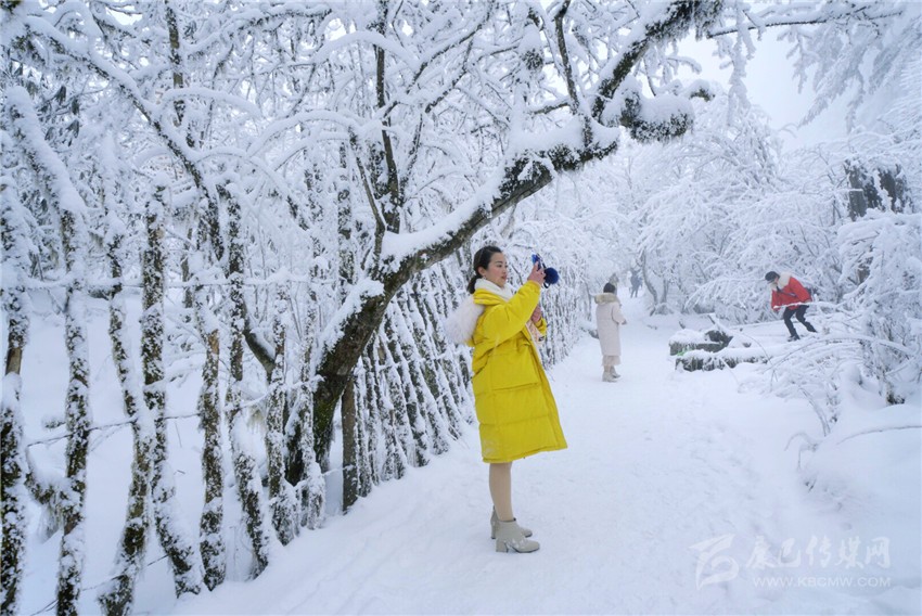 游客在海螺溝景區(qū)冰雪世界中自拍。江衛(wèi)平 攝