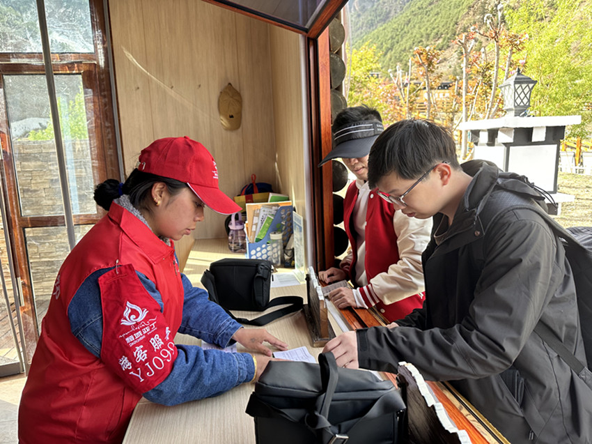 “我們?yōu)橛慰吞峁┞糜巫稍?、線路指引、文明旅游勸導(dǎo)、發(fā)放宣傳折頁等服務(wù),同時還幫助游客在手機(jī)App、互聯(lián)網(wǎng)預(yù)訂酒店,規(guī)劃旅游線路,寄存包裹等,讓游客感受到亞丁景區(qū)是有溫度、有人情味的旅游目的地?!薄拔逡弧逼陂g稻城亞丁景區(qū)志愿者四郎曲初告訴記者。