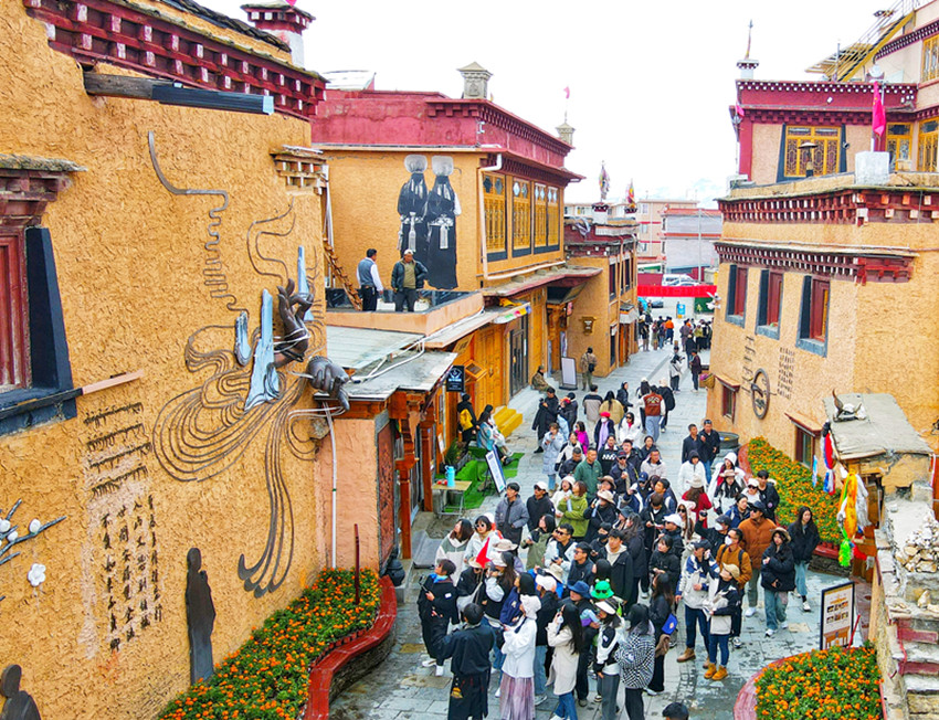 景區(qū)美食、休閑娛樂、非遺商品三個特色街道的商家們?yōu)橛佑慰鸵沧鲎懔藴?zhǔn)備,各種特色工藝品、熱氣騰騰的美食隨處可見,還有民族特色歌舞表演,讓大家感受藏族傳統(tǒng)文化的魅力。