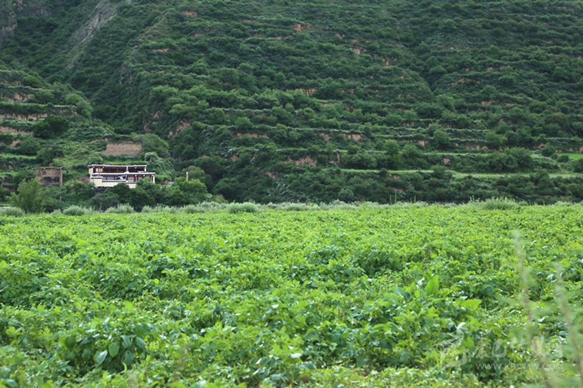 從甘孜報(bào)社里的便道轉(zhuǎn)進(jìn)阿里布果步游道,一路向南,走至公主橋,再走了一段G318,便右轉(zhuǎn)進(jìn)了南無(wú)村。