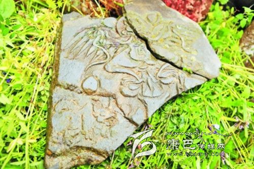另外,今內(nèi)蒙古伊克昭盟伊金霍洛旗成吉思汗陵,供奉的“成吉思汗狩獵馬鞍”上,有二龍戲珠(“如意寶”由六顆海螺束成),其下面是大鵬金翅鳥(niǎo)護(hù)衛(wèi)牦牛圖形,這是典型的川西地區(qū)苯教圖案。2012年7月8日,調(diào)查小組一行在協(xié)德鄉(xiāng)古寺瑪尼堆中,也采集到大鵬金翅鳥(niǎo)護(hù)衛(wèi)牦牛的石刻(宋代)。9月28日在協(xié)德鄉(xiāng)雀兒村藏民擁措家看到一副馬鞍,其上也有類(lèi)似的二龍戲珠、如意寶圖形。成吉思汗的“狩獵馬鞍”是成吉思汗到過(guò)川西藏區(qū)的最有力的證據(jù)之一。