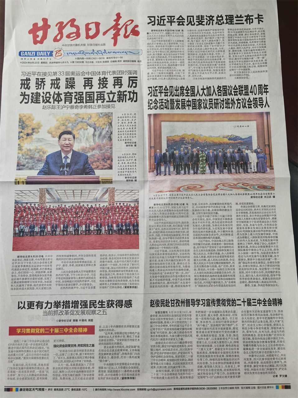 2024年8月22日出版的《甘孜日報》(第13858期)。楊燕 攝