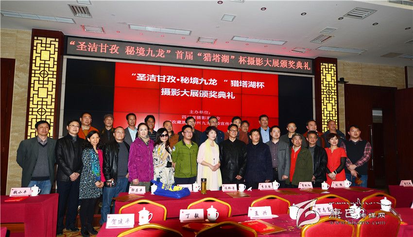 當(dāng)天下午三點半,在成鑫苑酒店三樓大廳,“藏彝走廊秘境九龍”首屆獵塔湖杯攝影展頒獎儀式隆重開始。巨大的電視顯示屏上展示著九龍縣的風(fēng)光和人文美景。頒獎現(xiàn)場不時響起一陣陣快門聲。