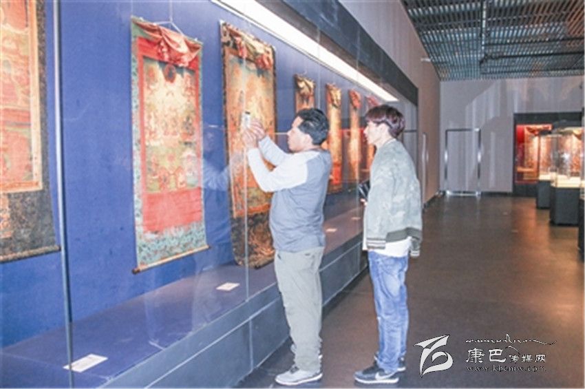 在博物館的一樓右側(cè)的展館,我州收藏家羅布的近四十多件私人收藏在此展示。在接受采訪時(shí)羅布說:“這些展品是從60多件藏品中選擇出來參展的。我從小受家庭影響便接觸到藏族歷史文化,對這些藏品有著深厚的情感。從記事開始就對這些東西很熟悉,‘文革’期間家里一些收藏品被家人偷偷藏在山里,‘文革’結(jié)束后才把這些東西拿回家。那一刻,我從內(nèi)心深處感受到這些東西的珍貴性。我覺得這是我們藏民族獨(dú)有的文化,在以后的幾十年時(shí)間里,我走遍了藏區(qū)各地,把這些文物當(dāng)做一門藝術(shù)去研究?,F(xiàn)在我做收藏、展示、研究等工作,主要是因?yàn)槲覀€(gè)人認(rèn)為這些來自各地的藝術(shù)珍品是我們民族的魂,我想將它們?nèi)苛粼诳刀?,留給后人。說起藏族文化,很多時(shí)候口說無憑,只有通過更多的實(shí)物展示,才能讓人們更多、更深刻的去了解藏族文化。藏文化是中華文化的重要組成部分,而這些藏品才是藏文化最好的代言。我覺得保護(hù)和傳承這些東西,人人有責(zé)。”