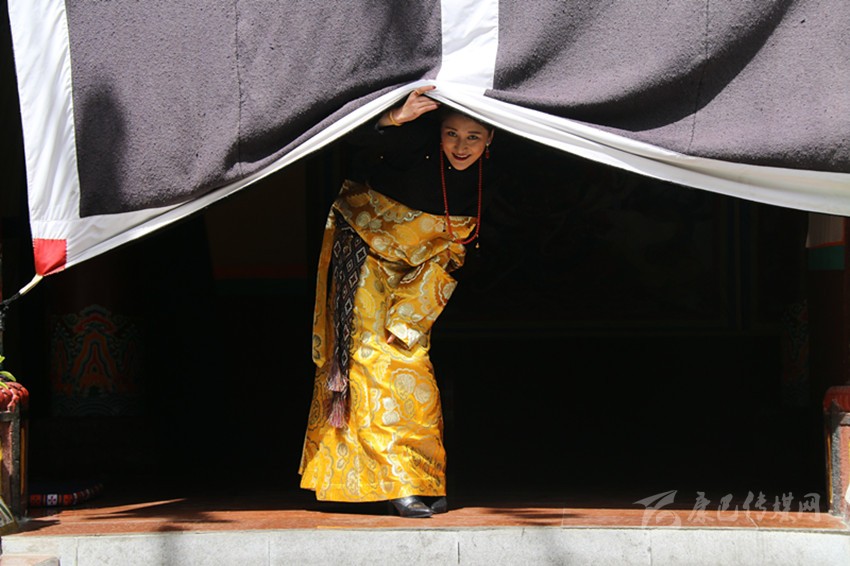 無論是經(jīng)典的黑色立領(lǐng)上衣還是金邊裝飾的翻領(lǐng)上衣,都十分時(shí)髦美觀,配上做工精細(xì),由毛呢、氆氌等材料制成的充滿民族特色花紋的下衣,加上華麗珠寶鑲嵌的腰帶是對傳統(tǒng)藏裝的傳承與發(fā)展。