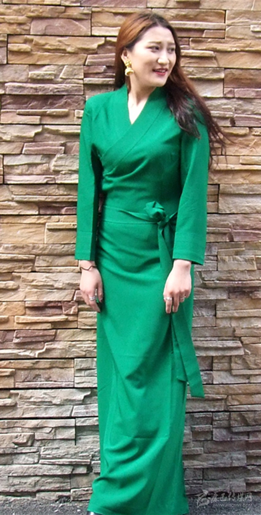 春天,小草發(fā)芽了、柳枝綠了……到處都是綠的主基調(diào),此款藏裝抓住了這一特色,整款由綠色統(tǒng)領(lǐng),設(shè)計(jì)簡約大方又充滿潮流味兒。有袖的西式藏裝沒有繁瑣復(fù)雜的著裝過程,穿在身上也是十分便捷輕松,同時(shí)還完美勾勒出了女性的曲線美;外搭做工精細(xì)的小馬甲,不僅時(shí)尚,還是天氣突然變幻時(shí)暖背暖身的一大貼心設(shè)計(jì)。