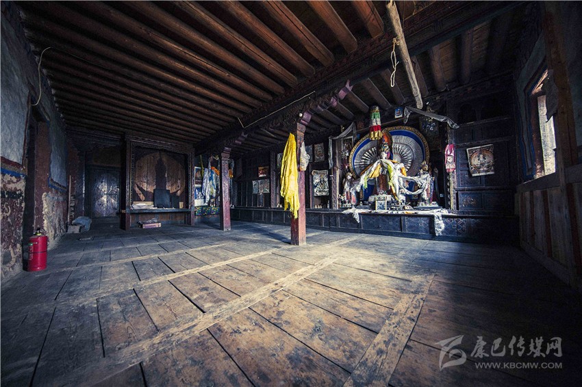整個自麥經(jīng)堂內(nèi)除了佛像外,所有的家具都已經(jīng)被搬走,但從墻上的壁畫和佛像上,依然還能看出當年自麥家族的輝煌。
