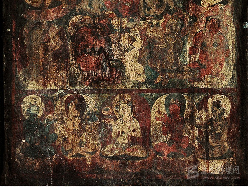 西藏佛教是從印度和中原分兩路傳入的,所以前弘期的繪畫風(fēng)格一是受到印度波羅藝術(shù)的影響;第二,則是文成公主進藏時,把中原佛教繪畫風(fēng)格也帶入了西藏。于是,這一時期,印度、中原的繪畫風(fēng)格同時在青藏高原上交響,也常常在同一面墻壁上并存。如同當(dāng)時修建的桑耶寺一樣,糅合了印、漢、藏三種審美風(fēng)格。
