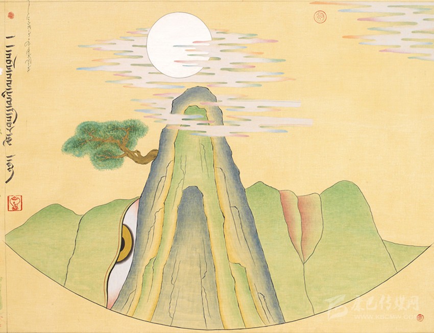 15世紀(jì)以來,唐卡發(fā)展所恒定的兩個(gè)元素:一是平面構(gòu)圖的神佛之境,另一則是吸收大青綠山水精髓。正如DNA鏈的雙螺旋結(jié)構(gòu)一般,使唐卡繪畫在歷史時(shí)空中穿插縈繞,在雪域各地生根開花。到了公元20世紀(jì)初,照片的高度寫實(shí)促使藏地畫家邁出了革新步伐,使得唐卡繪畫逐漸擺脫傳統(tǒng)束縛,開啟了“人”的覺醒。衛(wèi)藏地區(qū)出現(xiàn)了“根敦群培、安多強(qiáng)巴”引入寫實(shí)主義的嘗試,成為當(dāng)今西藏“布面重彩”的先驅(qū)。新中國(guó)成立后,內(nèi)地的美術(shù)創(chuàng)作積極影響了三大藏區(qū)的繪畫發(fā)展,上世紀(jì)80年代,四川康區(qū)“甘孜藏畫”肇起,在《嶺·格薩爾王》人文主義的召喚下,《雪山兒女》《唐東杰布》《新概念唐卡》正從歷史深處一路走來。而近年來,安多藏區(qū)則創(chuàng)新出了“藏族祥巴版畫”,祥巴版畫不僅是從材料技法上對(duì)西藏繪畫的豐富,更是藏地畫家們?cè)谧杂X不自覺的求新、求變;甚至在傳統(tǒng)唐卡領(lǐng)域,民間畫師也都在紛紛嘗試將傳統(tǒng)唐卡和現(xiàn)代審美相結(jié)合。這一切,正是唐卡繪畫從傳統(tǒng)走向現(xiàn)代、由宗教博衍至生活的演變過程,在這個(gè)過程里,藏地畫家不僅在畫面的形式和語言上完成了傳統(tǒng)與當(dāng)代的統(tǒng)一,還將西藏的審美特質(zhì)虹化為作品的精神內(nèi)核。這也是唐卡藝術(shù)第二次“從香巴拉到人間”的過程,成為民族文化發(fā)展的新坐標(biāo)。