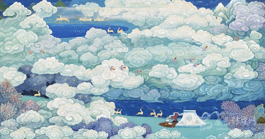 云中鹿鳴。益西澤仁 畫作
