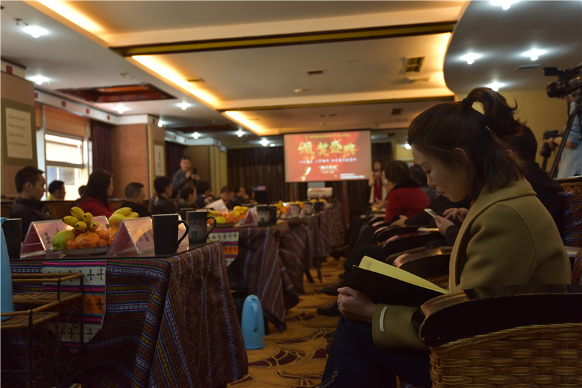 進(jìn)入會(huì)場(chǎng),多媒體屏幕上,“《康巴·悅讀》頒獎(jiǎng)盛典”幾個(gè)字在紅色背景的襯托下格外醒目,所有與會(huì)人員,無(wú)論血?dú)夥絼?、溫柔恬靜還是年逾花甲,都是僅僅有序,按座簽依次入坐。