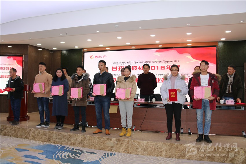 在正式授課之前,甘孜日報社分別為“2018年度優(yōu)秀通訊員”、“藏文全媒體中心紀念改革開放40周年藏文散文征文比賽”獲獎者頒發(fā)了榮譽證書,現(xiàn)場響起熱烈的掌聲。