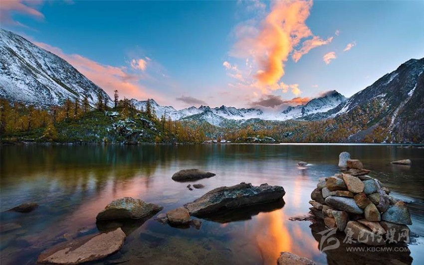 這里的樹木都是連排成片、整齊劃一的, 隨著季節(jié)的變換,呈現(xiàn)出不同的色彩,讓人不得不感嘆大自然的神奇。那一片紅彤彤的樺樹林, 盛開得如此熾烈,存蓄了無(wú)窮的力量,恨不得把周圍的湖水、山峰通通染紅,渲染得嬌媚動(dòng)人。