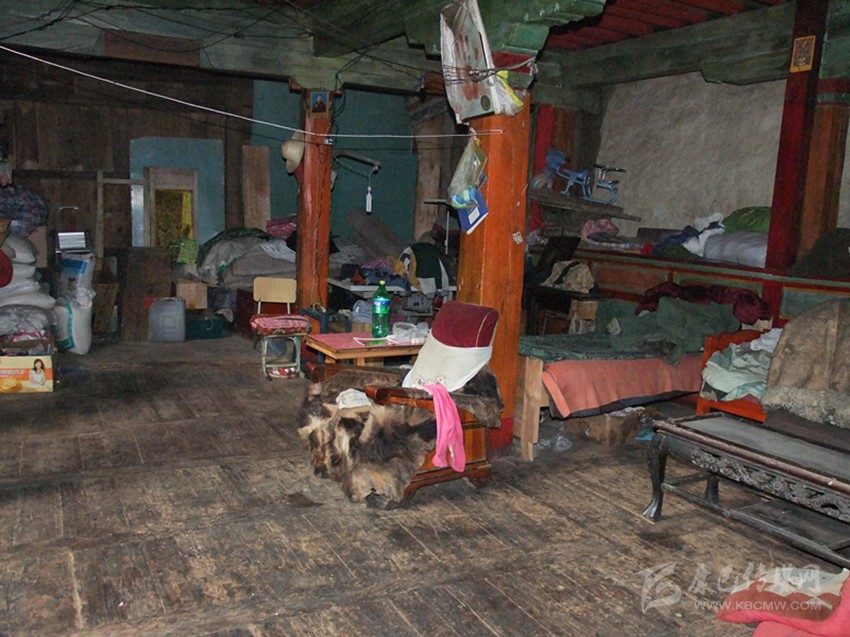老屋鄰著折多河,靠著山腳修建,是典型的康定老式木板瓦房:一樓墻體石頭壘砌,混有土沙,住著冬暖夏涼,隔出兩間作為廚房和客廳。二樓整體木柱框架,木板墻與一樓緊密結(jié)合,是大家寢臥之地?,F(xiàn)在康定這樣構(gòu)造的老屋已基本看不到了。