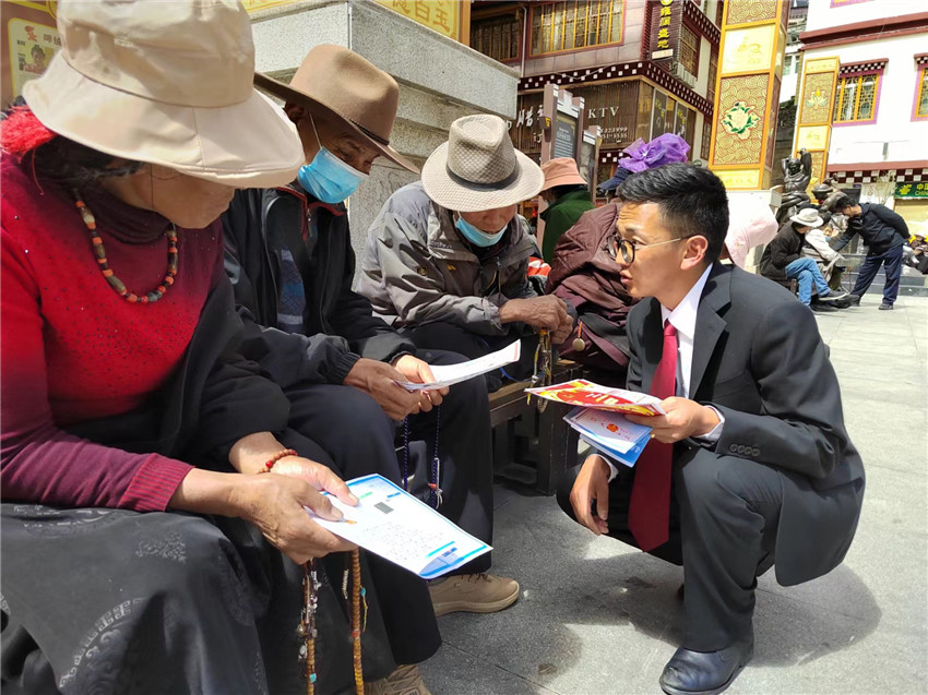 乘車來到村口,村口立著一個(gè)巨大的天然石,上面刻著“幸福美麗新村”六個(gè)大字。村莊里的一幢幢藏房依山而建掩映在密林之間。沿著整潔寬廣的入戶水泥路,我們像外地來的游客一樣走進(jìn)村莊,家鄉(xiāng)的房屋,上下共四層,白色的墻壁,紅色的房脊,屋頂上還掛著五彩繽紛的經(jīng)幡。與周圍的田地、綠樹、小溪融在一起,就像一幅油畫,美麗極了!