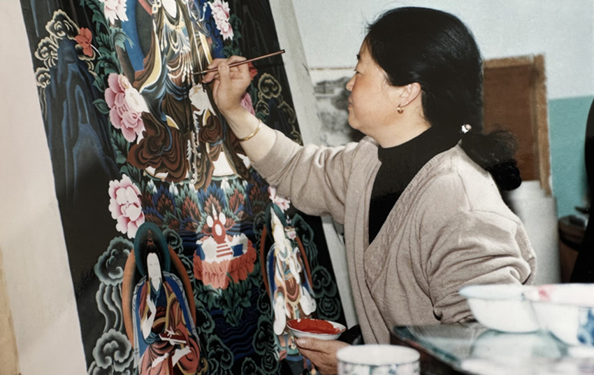 翔秋志瑪(又名王芳馨),這位在新中國(guó)成立后,成長(zhǎng)起來(lái)的畫(huà)家,打破了女性不能畫(huà)唐卡的舊規(guī),將古老的藝術(shù)與藏民族現(xiàn)代的生活相結(jié)合,開(kāi)創(chuàng)了我州藏畫(huà)的新局面。